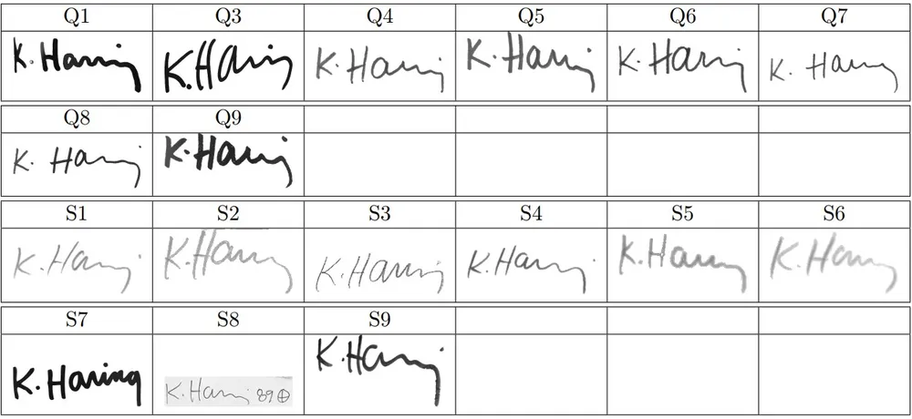The Keith Haring signature displays consistent traits across samples.